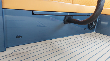 - Kajuit bekleed en afgewerkt met skaileather panels