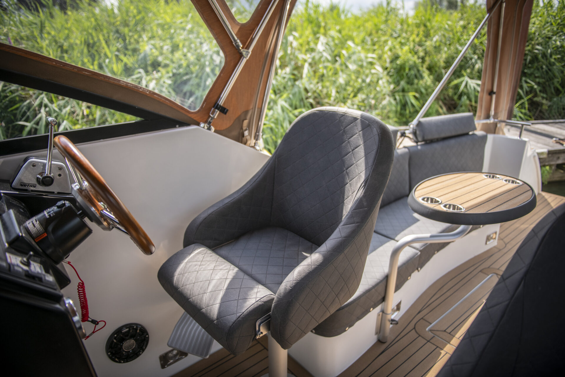 De Maxima 920 Retro Cabin is voorzien van slimme opbergruimtes en een afgesloten toilet, wat het comfort aan boord verhoogt. De kajuit heeft een zithoek voor 6 personen die eenvoudig kan worden omgevormd tot een bed voor twee, perfect voor dagtochten en overnachtingen.