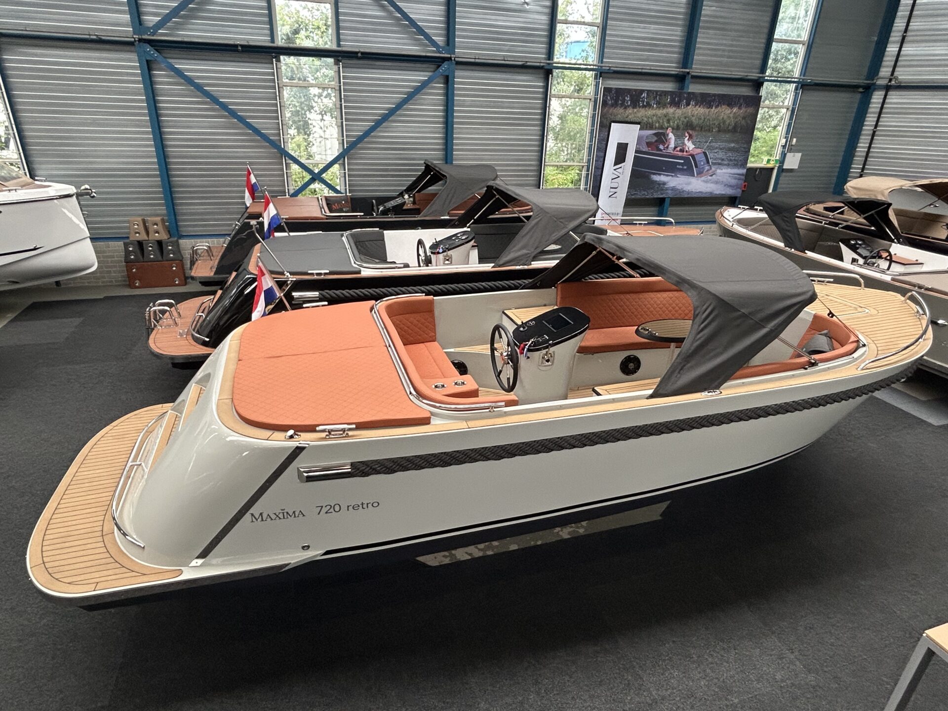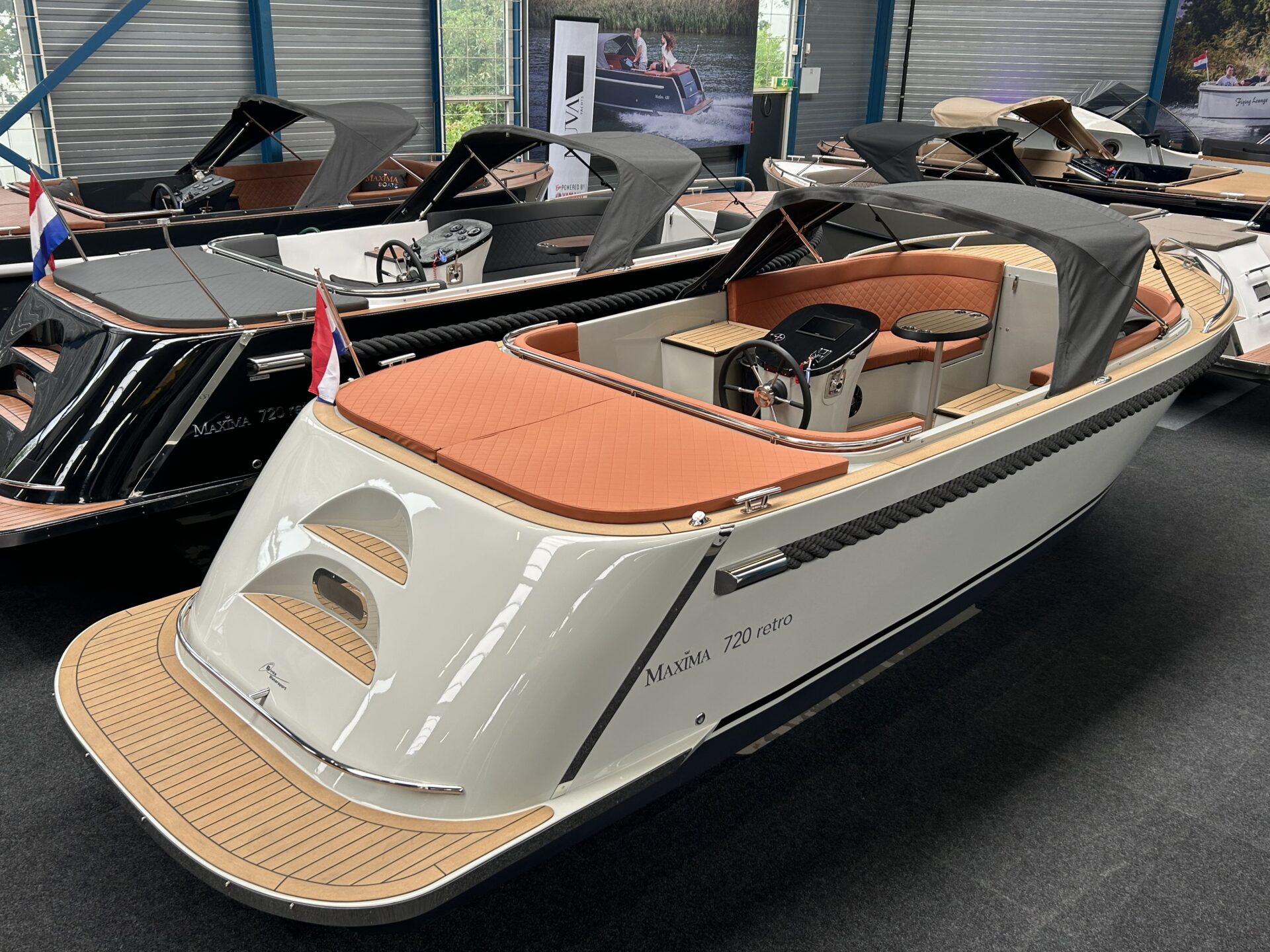 Ontdek de Maxima 720 Retro, een opvallend model door zijn unieke vormgeving en slimme indeling. Deze sloep verenigt tijdloos design met uitstekende vaareigenschappen, waardoor hij niet alleen prachtig is om te zien, maar ook soepel en stabiel vaart op het water.