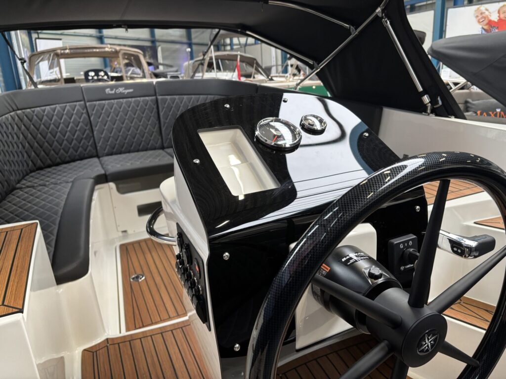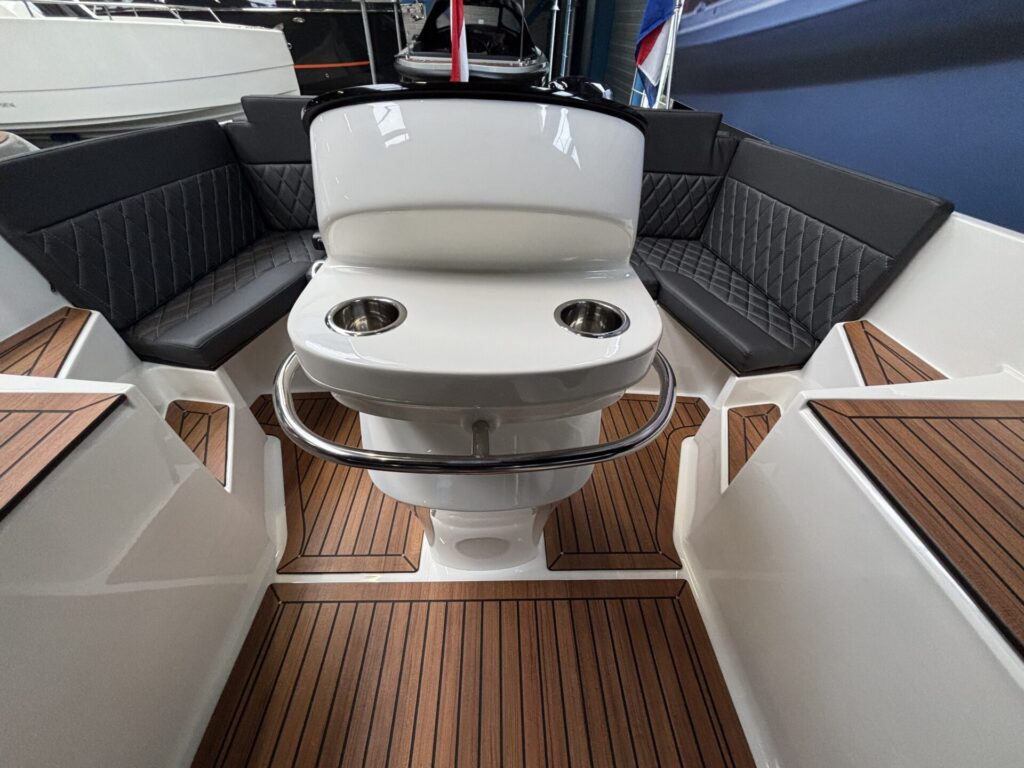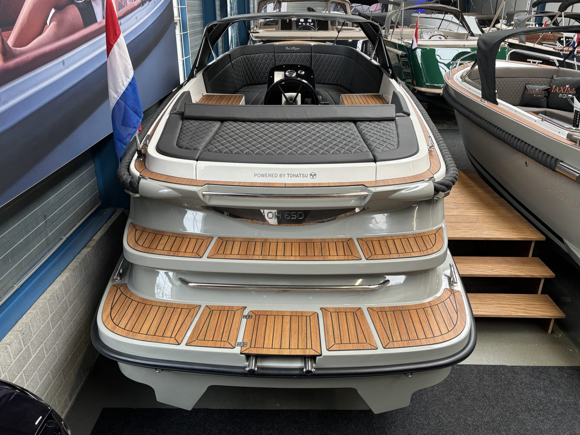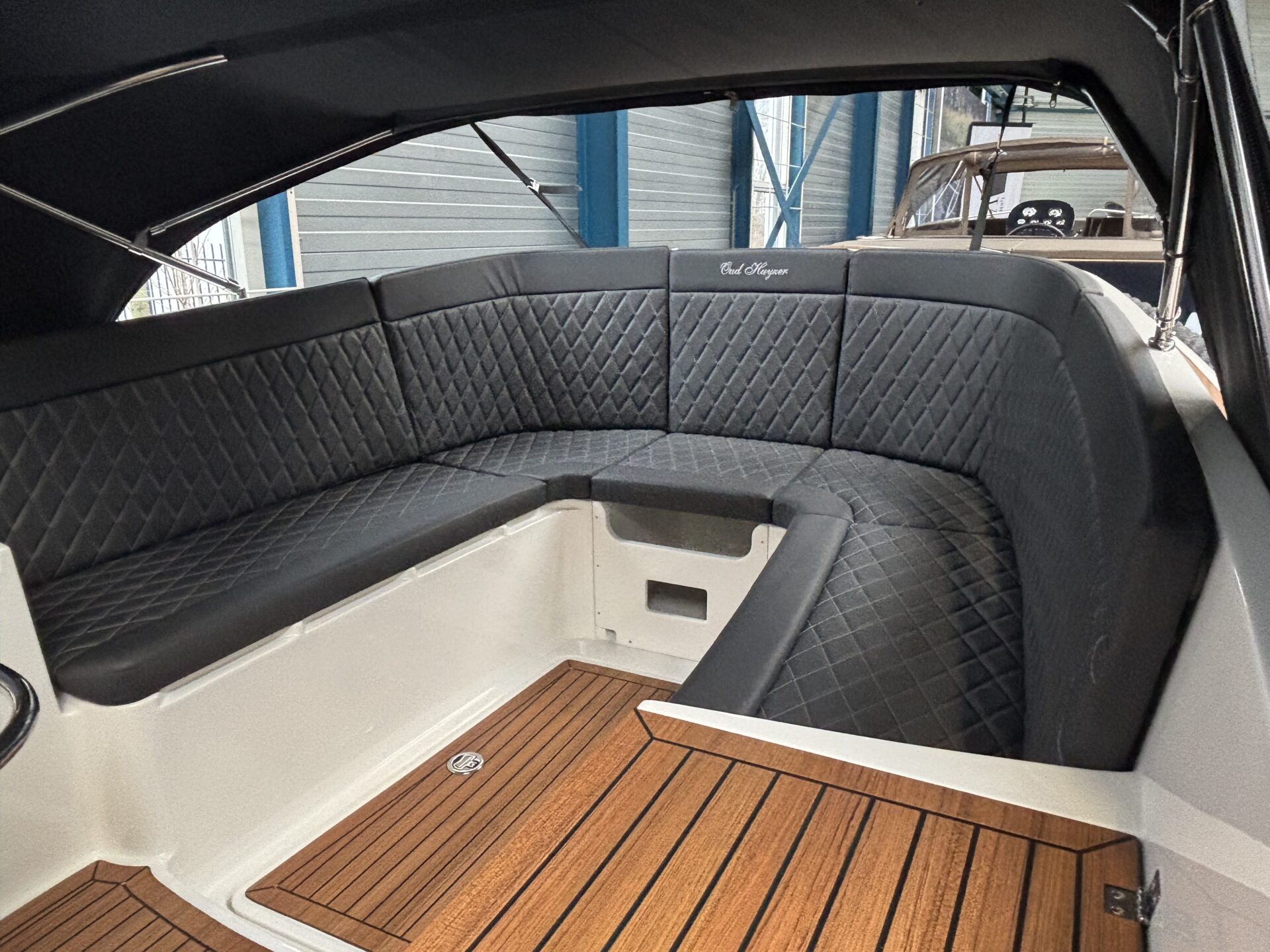 Deze nieuwe tender van Oudhuijzer kenmerkt zich door o.a. de hoge gangboorden, zodat u veilig met uw familie en kinderen aan boord kunt vertoeven. Het comfort is door de hoge rug kussens werkelijk zeer goed. Het zonnedek kunt u gemakkelijk opruimen onder de voorbanken, zodat deze niet in de weg ligt. Aan de achterzijde naast de motor heeft u riante opbergvakken voor bijvoorbeeld u fenders. Tevens beschikt de boot over 4 grote opbergvakken, waarvan 1 is geplaats in de vloer, bijvoorbeeld voor een inbouwtank.