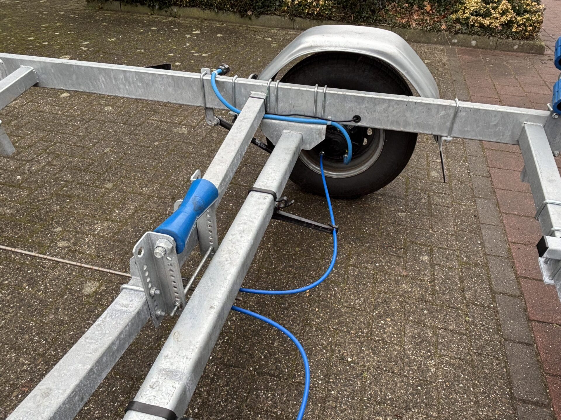 De trailer is nieuw (bouwjaar 2025) en staat momenteel op Duits kenteken. Deze kan uiteraard ook terug gekeurd worden naar Nederlands kenteken. Momenteel is deze afgesteld op het onderwaterschip van een Maxima 620 Retro of Maxima 630 Tender